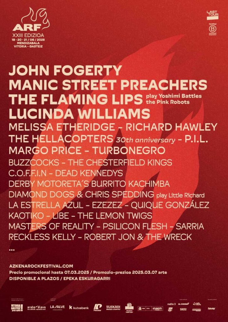 El Azkena Rock Festival (ARF) anunció la incorporación de John Fogerty, ex líder de Creedence Clearwater Revival, como uno de los principales artistas para su vigésimo tercera edición, que se celebrará del 19 al 21 de junio en el recinto de Mendizabala, Vitoria-Gasteiz.
