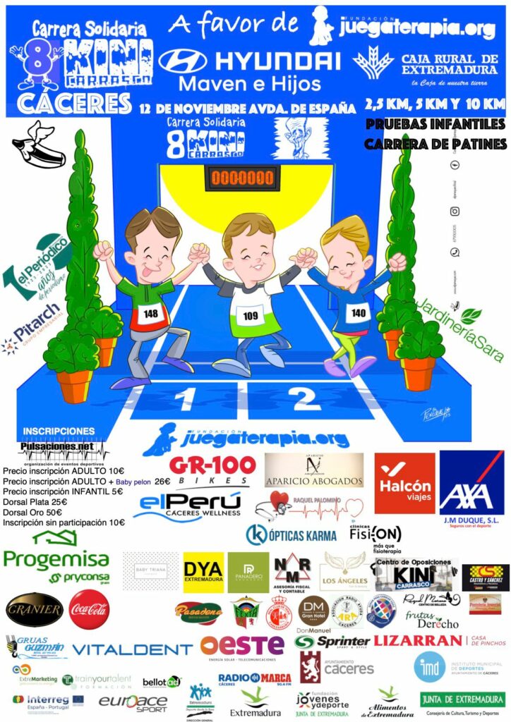 Deporte y solidaridad se dan cita un año más en la VIII Carrera Solidaria Kini Carrasco, que se tendrá lugar este domingo 12 de noviembre, y donde todo lo recaudado irá a parar a la Fundación Juegaterapia, con el objetivo de que los niños que estén en un hospital con área de oncología infantil puedan pasar los días más felices jugando.