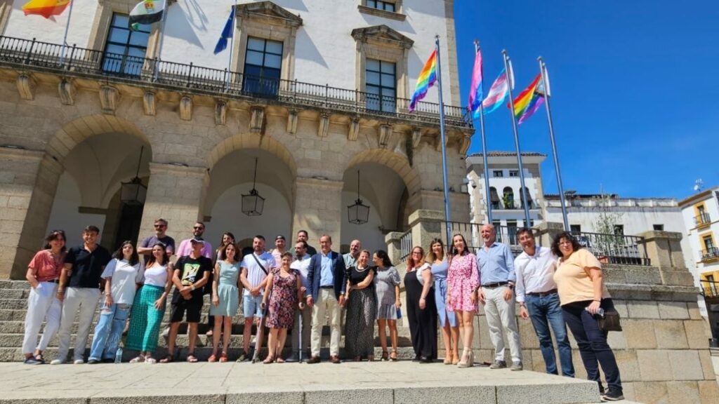“Cáceres con orgullo” se plantea con una extensa programación que se desarrollará durante toda la semana y ha arrancado hoy con el izado de las banderas de los distintos colectivos en la fachada del Ayuntamiento, donde permanecerán ondeando hasta el fin de semana.
