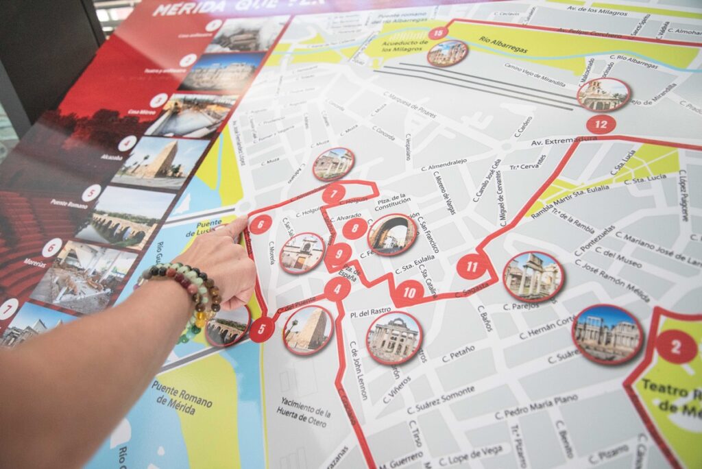 El Ayuntamiento, dentro del proyecto Smart Mérida, ha habilitado en las Oficina Municipales de Turismo del Teatro y el MAM un plano tacto-visual en relieve de los monumentos y de las zonas de interés de la ciudad. “Un recurso que se pone a la disposición de las personas con discapacidad visual para facilitar su orientación, y que contribuyen a lograr una ciudad más accesible” en palabras del delegado de turismo, Felipe González.