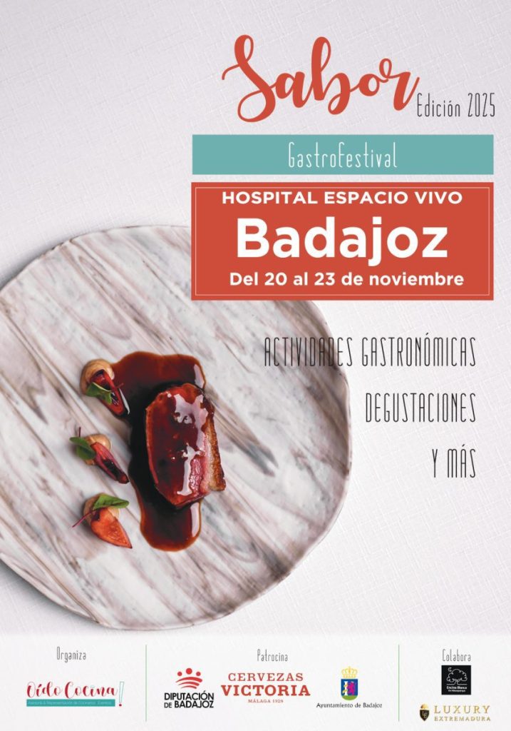 La IV edición del Gastrofestival Sabor Badajoz se celebrará del 20 al 23 de noviembre en el Hospital Centro Vivo con la participación de ocho establecimientos de la provincia de Badajoz y uno de Cáceres. El diputado Ricardo Cabezas y la gerente de Oído Cocina, Cristina Pérez-Sala, han presentado el evento que en 2024 alcanzó una recaudación global de más de 70.000 euros con más de 22.200 asistentes. Entre los restaurantes participantes se encuentran establecimientos reconocidos con Soles Repsol, como Drómo y Lugaris.